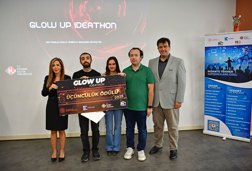 1-2 Ekim 2025 tarihlerinde İKÜ ANTS TEKMER tarafından düzenlenen Glow-Up Ideathon’da yer alan GEN-SYND ekibi, “WhaleTag” adlı projesiyle 48 saat içinde geliştirdikleri çözüm sayesinde 3.’lük ödülünü kazandı.